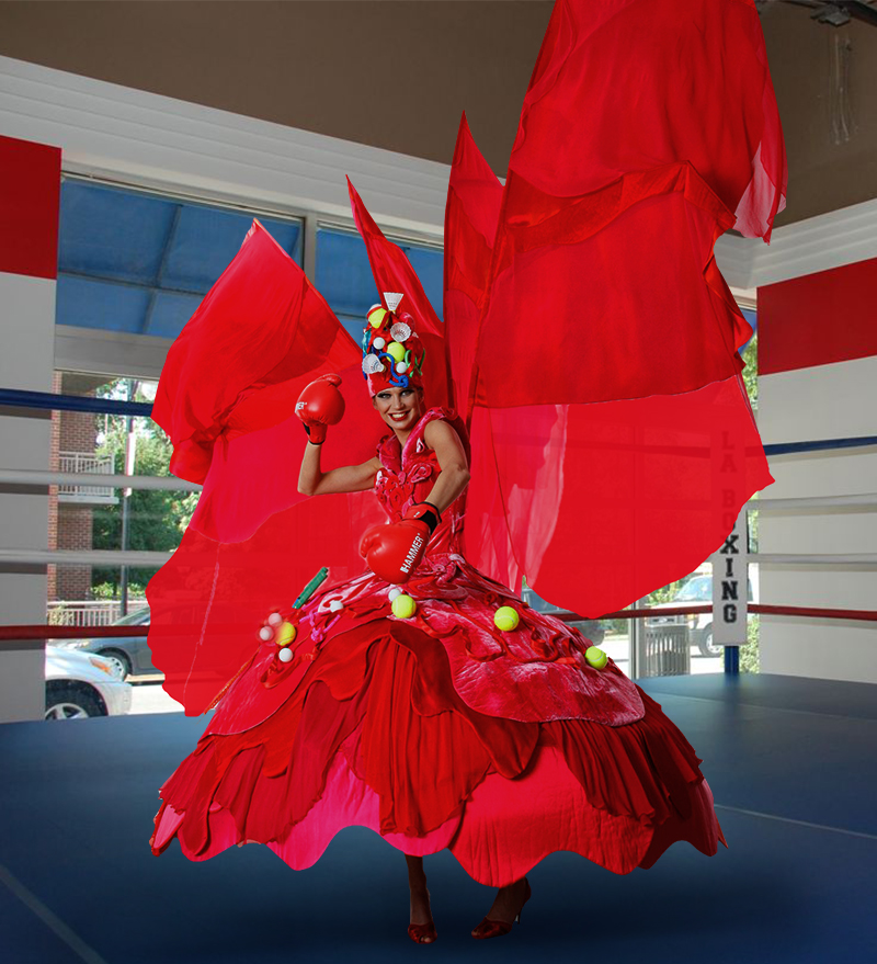 Die meisten Modelle bestehen aus ausladenden Röcken, Korsagen und rucksackähnlichen Rückenteilen zum Einstecken der hohen Kostümteile wie flügel, Blätter oder Fahnen. Damit die aufwendig konstruierten und mit Liebe handgenähten Unikate nicht beschädigt werden, sind im Vorfeld besondere Aspekte zu berücksichtigen. Somit garantieren wir Ihnen einen reibungslosen Ablauf der Walking Acts und Vocal Acts. Video Links, Demo Hörproben, Fotos der Kostümmodelle, Künstler Biographien mit Repertoirelisten und Referenzen helfen Ihnen bei der Zusammenstellung Ihres persönlichen Cross-Over-Menues.