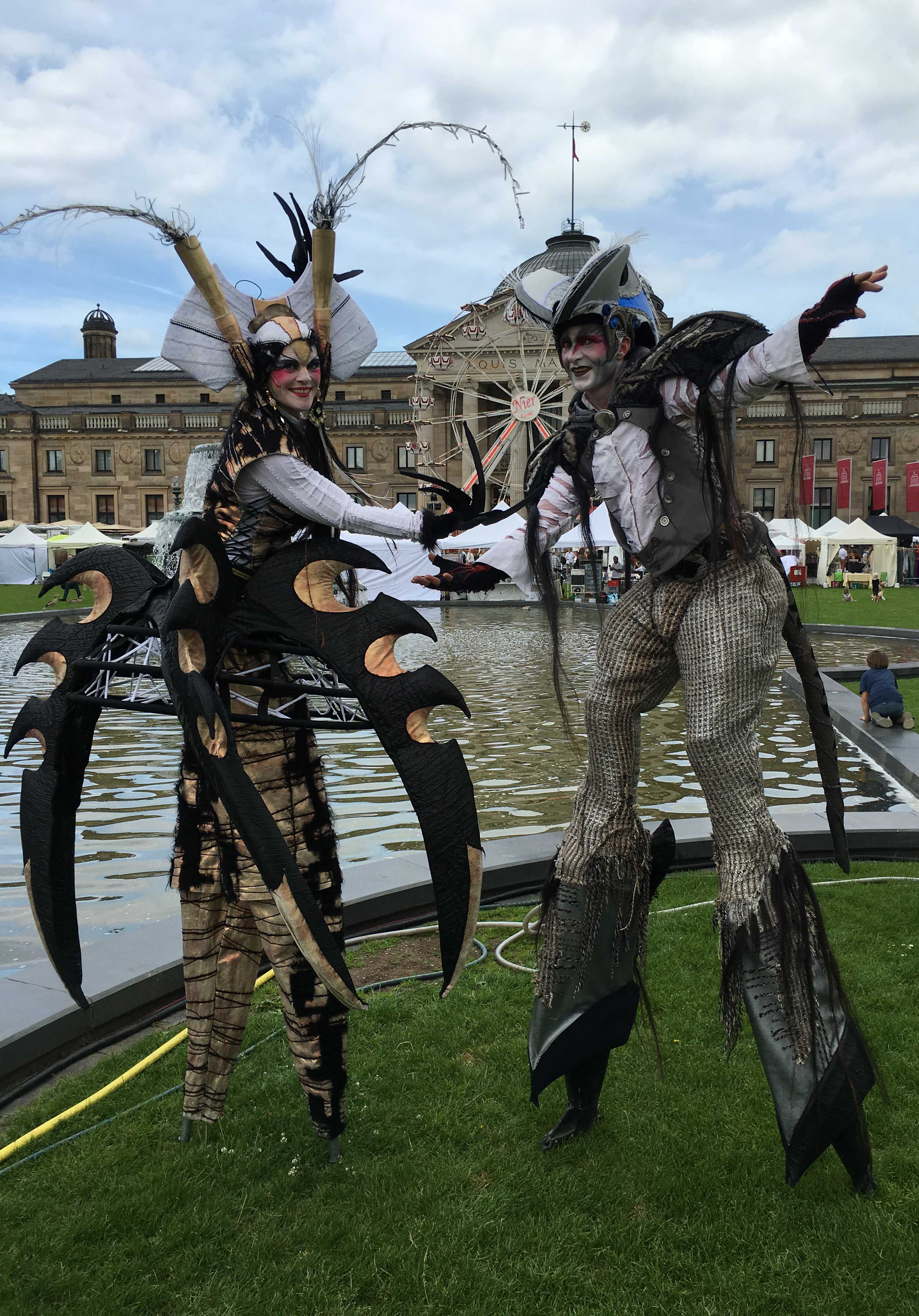Ein wesentlicher Bestandteil der Wirkung liegt in der Interaktion. Stelzenläufer treten in Kontakt, reagieren auf Situationen und beziehen Gäste spielerisch mit ein.