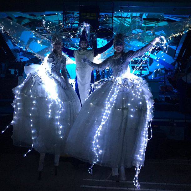 Der Winter bietet die Möglichkeit für festliche und besinnliche Veranstaltungen. Ob Weihnachtsfeiern, Winterfestivals oder gemütliche Teambuilding-Aktivitäten in einer verschneiten Umgebung - die kühle Jahreszeit lädt ein, sich auf das Wesentliche zu besinnen und eine harmonische Gemeinschaft zu schaffen. Unsere Performances und Walking Acts zu diesem Element sind leicht und anmutig. Um die Show perfekt zu machen, bieten wir Ihnen Cross-Over Inszenierungen mit Akrobatik an oder als Walking-Act Stelzenläufer mit passenden Outfits zum Element Winter und Weihnachten.